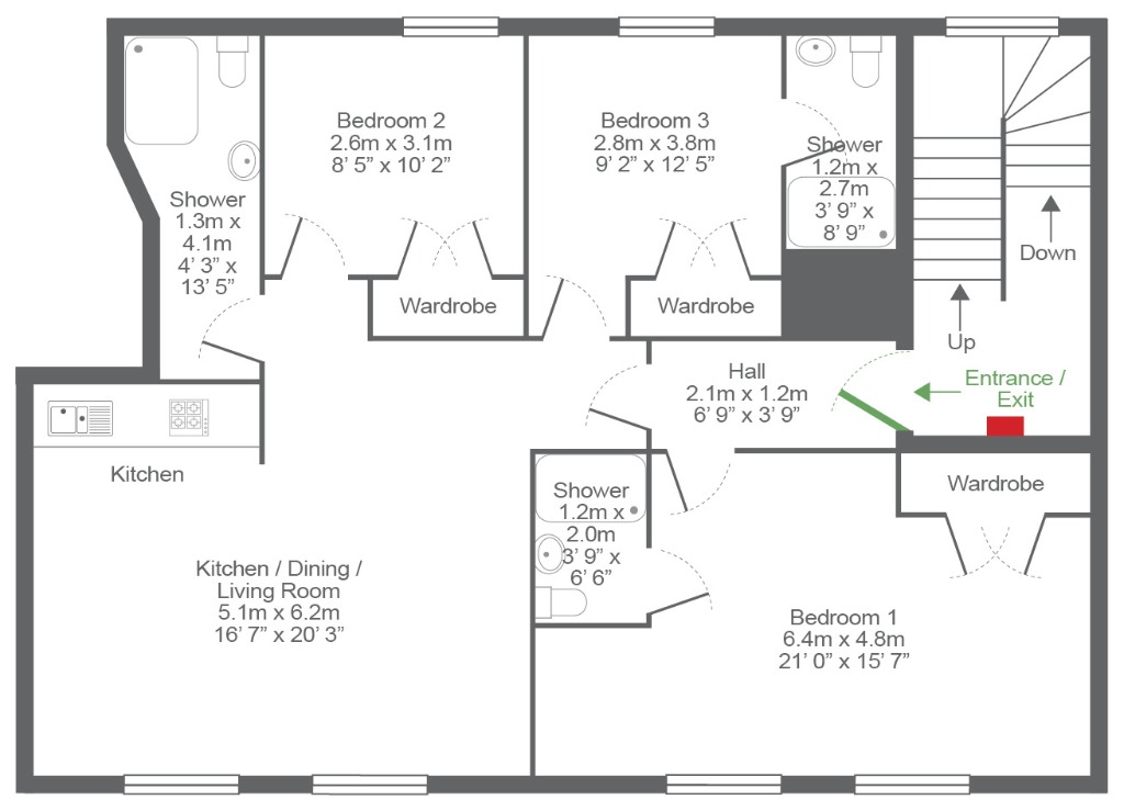 Offering 3 large double bedrooms (2 with ensuites) making these perfect for sleeping up to 6 guests comfortably. All apartments offer spacious open plan living room and kitchen complete with quality fittings and appliances.